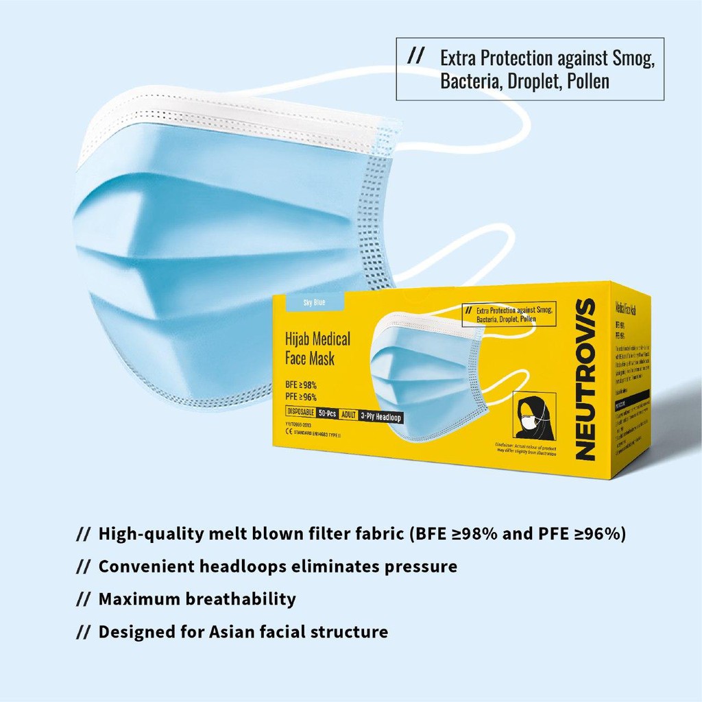 Neutrovis 3 Ply Hijab Medical Face Mask Hijab Premium Medical Face Mask Adult Face Mask Headloop Mask Head 50 S Box Shopee Malaysia